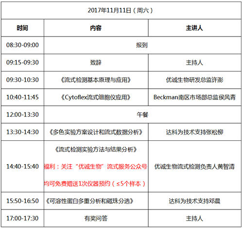 抓住秋天的尾巴,流式培訓(xùn)班要來長沙啦。本次達(dá)科為生物攜手優(yōu)誠生物,為熱愛流式學(xué)習(xí)的您準(zhǔn)備了內(nèi)容豐富的流式相關(guān)理論課程及實驗課程。達(dá)科為生物作為國內(nèi)一流的生物試劑供應(yīng)商,2017年在南京、杭州、武漢、北京、蘇州、溫州、鄭州等地舉辦了二十余場免費流式培訓(xùn)班,參加培訓(xùn)人員達(dá)到3000人,取得了熱烈的反響和良好的反饋。優(yōu)誠生物是湖南省乃至全國內(nèi)的優(yōu)秀的科研服務(wù)商,提供從課題設(shè)計、實驗實施到成果發(fā)表與轉(zhuǎn)化的全方位一站式服務(wù)。本次雙方合作,共同為您獻(xiàn)上一場流式盛宴。
