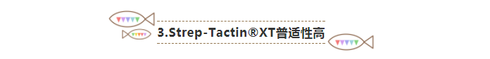 而Strep-tag?(包含Strep-tag?II或是Twin-Strep-tag?),都是短肽標簽,分別為8或28個氨基酸,一般不干擾蛋白折疊或活性,因此適合用于蛋白功能性研究[5]。Strep-tag?可以特異性地結合在Strep-Tactin?(二代介質)或Strep-Tactin?XT(三代介質)的生物素的結合位點。洗脫時使用的脫硫生物素(適用于二代)或生物素(三代),對同樣的結合位點有更高的親和力,能將目標蛋白從同樣位置移除,因此得到的目標蛋白純度一般高于95%[12]。
