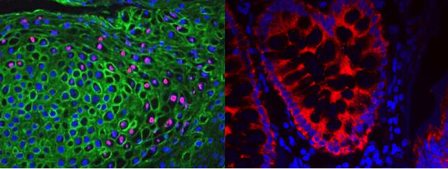2.AMCA:常用在多標(biāo)記實驗中,如免疫熒光、流式細(xì)胞術(shù)。其缺點是,淬滅快,且由于肉眼不能很好的檢測其所激發(fā)的藍(lán)色熒光,因而AMCA耦聯(lián)的二抗更適用于檢測大量存在的抗原。