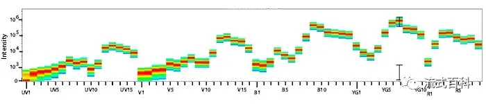 為了解決這個問題,光譜流式的技術在借鑒傳統流式技術的基礎上應運而生,通過分析每個熒光素的光譜特征區別不同的熒光素,即使發射波長相似的熒光素如APC和AF647,由于其波形不同,在光譜流式中也能很好的解析開,可消除傳統流式中熒光間補償的困擾,另外通過對特異性光譜的分析可以方便的消除自發熒光信號的干擾。因此,光譜流式相對于傳統流式來說可以同時檢測更多的參數,那么適配光譜流式的熒光素的開發是這項技術發展的核心。