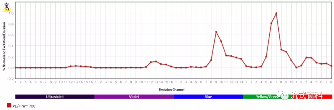 PE/Fire? 700在光譜流式平臺上的發射光譜(Emission Spectra of PE/Fire? 700)