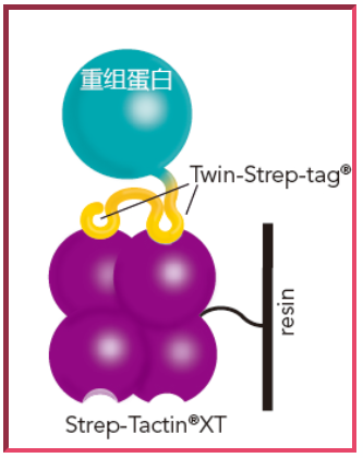 即便親和力已提升,在某些狀況下,Strep-Tactin?使用仍有所限制,尤其是在需要極高親和力的應用之中,例如檢測蛋白質間的交互作用、或是從目標蛋白濃度低的樣本中進行純化。因此科學家利用總結合力(Avidity)的原理,將兩個Strep-tag II以Linker連接在一起 : Twin-Strep-tag 7。這一新標簽的出現(xiàn)再度提升了目標蛋白與Strep-Tactin?的鏈接強度,改善了低濃度樣本純化效果8,還能用于抓取蛋白復合體、檢測蛋白間的交互作用7, 9。